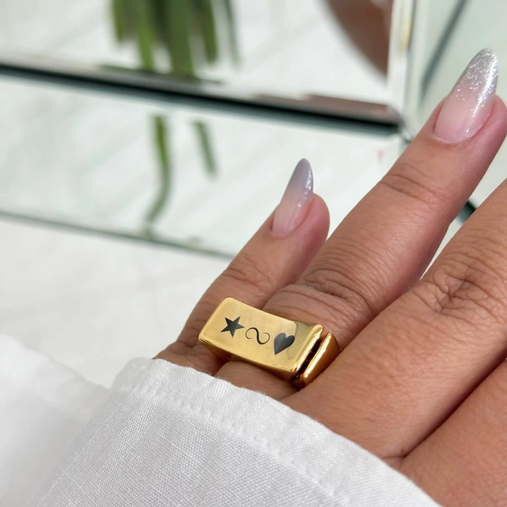 Este anel personalizado a laser é a escolha perfeita para quem deseja uma joia única e exclusiva. Com a gravação feita conforme o seu desejo, ele pode carregar nomes, iniciais, datas especiais ou qualquer detalhe significativo para você. Além disso, seu design ajustável garante conforto e versatilidade, adaptando-se perfeitamente ao seu dedo. Para personalizar o seu, entre em contato pelo WhatsApp: (21) 97608-1720.