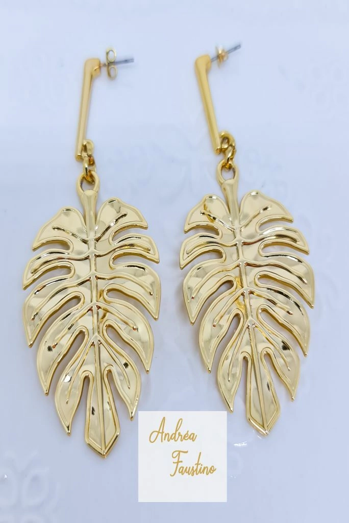 Esse brinco é um verdadeiro destaque, apresentando a opção de um pino gota ou fino dourado, que adiciona um toque de elegância e modernidade. O pingente em forma de folha Costela de Adão traz um elemento fresco e natural, evocando a beleza das florestas tropicais.