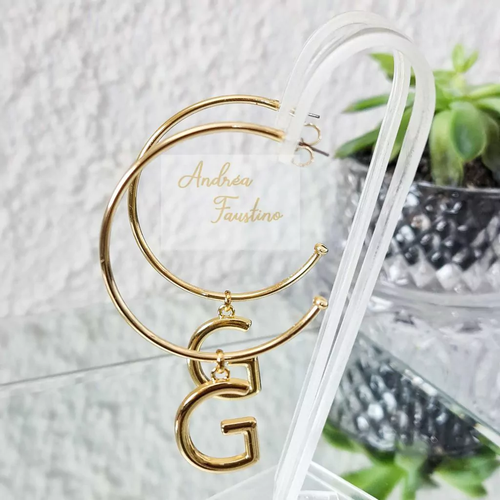 Esse brinco de argola dourada é uma peça elegante e moderna, com um pingente de inicial personalizada que adiciona um toque pessoal e único. A argola clássica complementa o design contemporâneo, tornando-o perfeito para expressar sua individualidade.