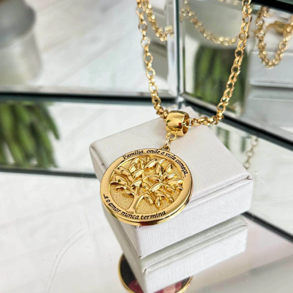 Colar com pingente de Medalhão Árvore da Vida medindo 42MM!