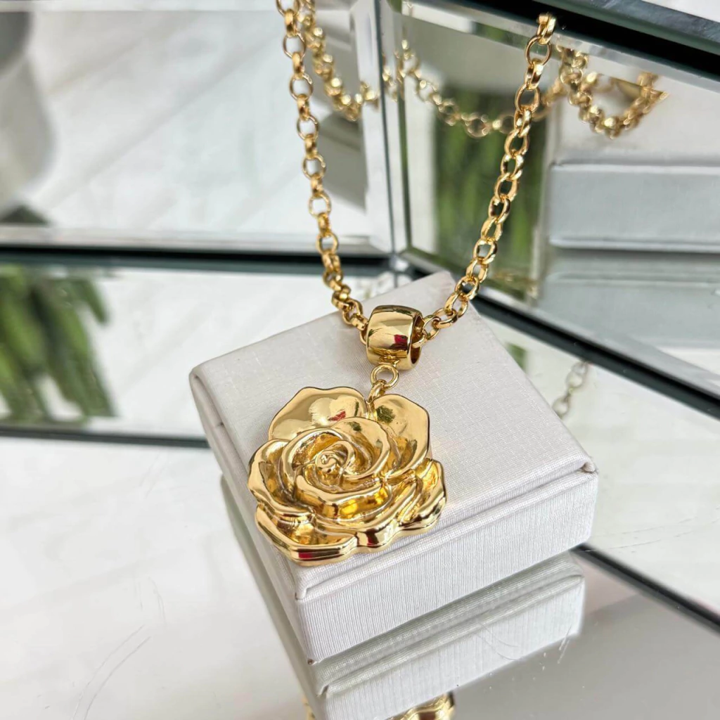 Colar com pingente de Relicário Flor medindo 32MM!