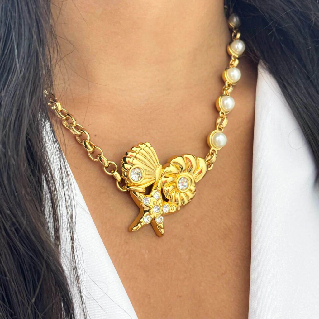 Colar com acabamento em fecho lagosta e com pingente de Mix Praiano adornado com Strass!