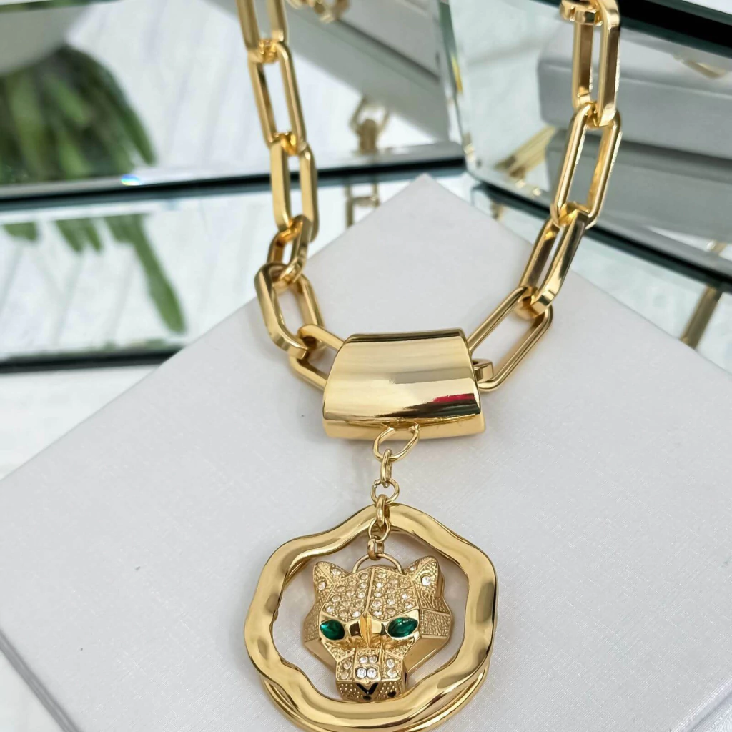 O Colar Animal print Max combina o brilho do dourado (ou outro acabamento que desejar) com a estampa selvagem, criando uma peça moderna, poderosa e cheia de estilo.