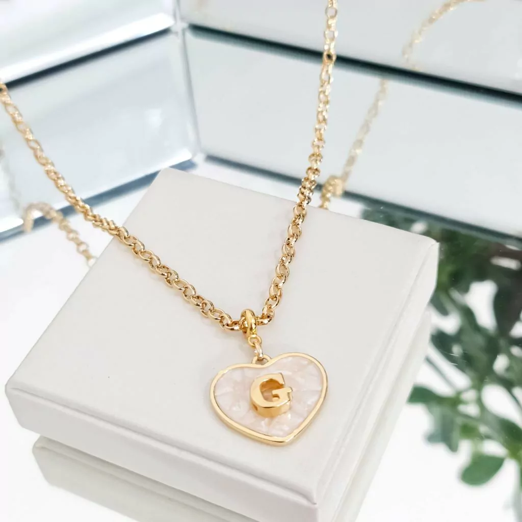 Este colar encantador apresenta uma corrente em elo português em tom dourado, que exala elegância e sofisticação. O pingente de coração em madrepérola traz um toque delicado e feminino, enquanto a inicial de sua escolha adiciona um elemento personalizado e significativo.