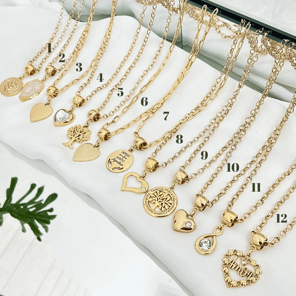 Esse colares promocionais inclui 12 colares dourados em corrente fina, cada um adornado com pingentes variados que refletem diferentes estilos e personalidades. As peças são leves e delicadas, perfeitas para compor looks tanto casuais quanto elegantes. O colar pode ser personalizado na medida desejada pelo cliente, garantindo um ajuste perfeito e confortável.
