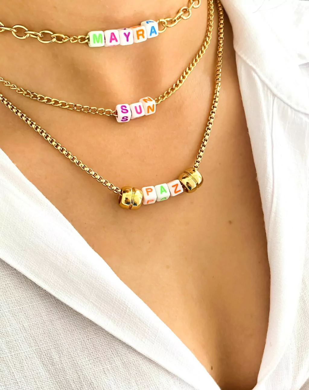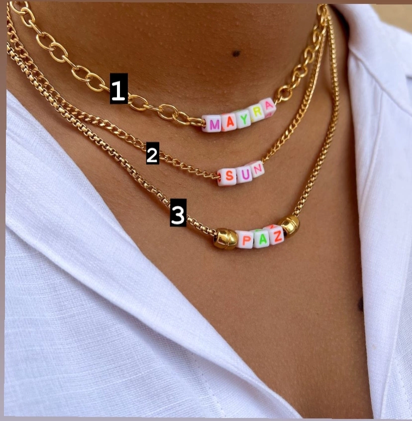 O colar dourado personalizado oferece a liberdade de escolher entre três estilos de corrente: a elegante corrente veneziana, a moderna corrente de elos e a clássica corrente batida. Cada opção traz uma estética única, permitindo que você crie um acessório que reflita seu estilo pessoal.