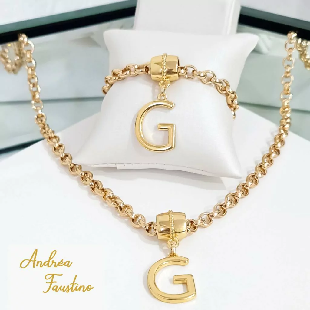 Apresentamos um elegante kit de colar e pulseira dourada na corrente em elo português, que tem sofisticação e personalização. Ambos os acessórios são adornados com um pingente de inicial personalizado, tornando cada peça única e especial. O colar é perfeito para complementar seu visual, enquanto a pulseira adiciona um toque de charme ao seu pulso.