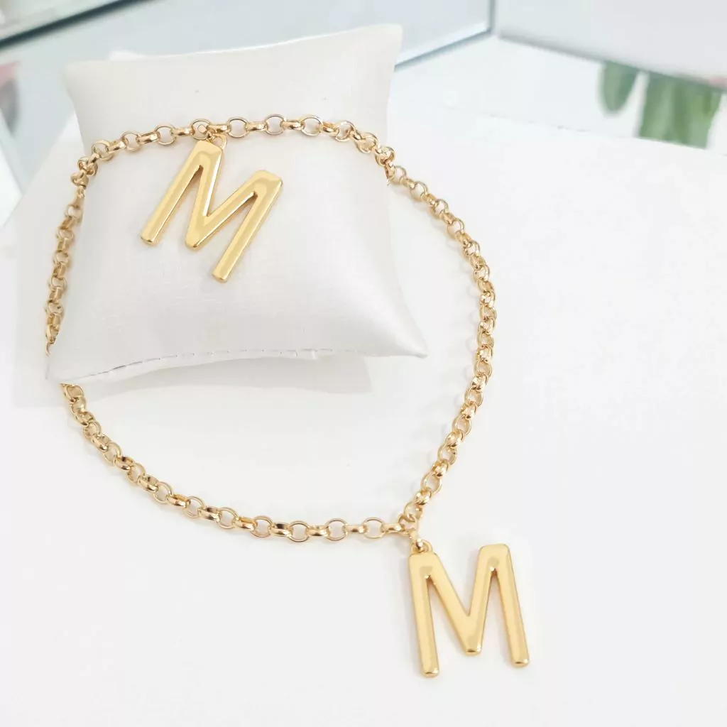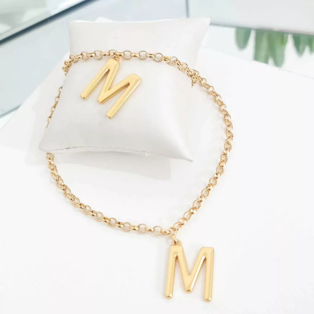 O kit de colar e pulseira dourados é uma coleção personalizada e cheia de significado, permitindo que você escolha a inicial que mais representa você ou alguém especial. Cada peça é delicadamente elaborada, com um design elegante que destaca a inicial em destaque, tornando-as perfeitas para expressar sua identidade.