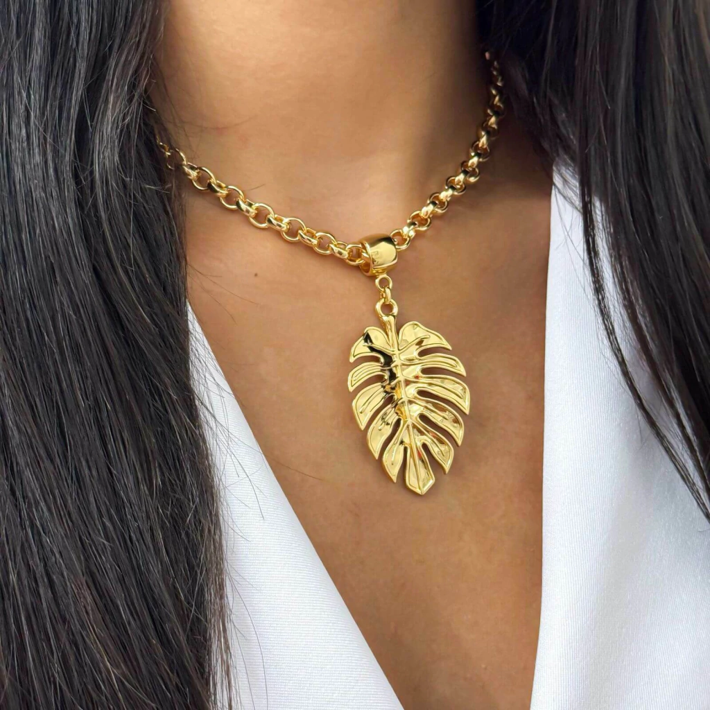 Pingente dourado de folha Costela de Adão medindo 54MM!