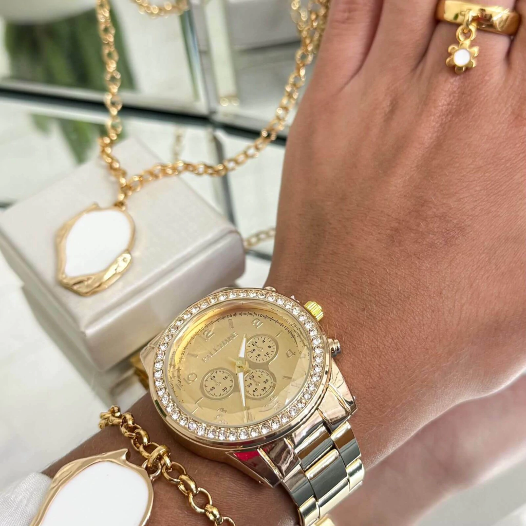 Relógio Dourado com Strass PallyJane! Relógio RESISTENTE a água!