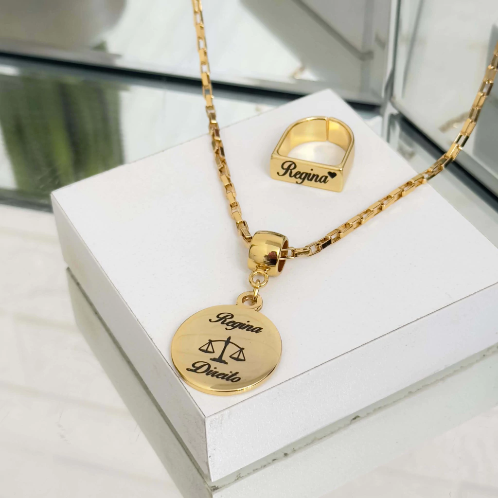Colar com Medalha Gravada com a profissão que você desejar! Medalha medindo 32MM! Conjunto acompanha também o Anel Dourado Regulável personalizado com o nome que você desejar! (Coloque o nome e a profissão desejada nas OBSERVAÇÕES)