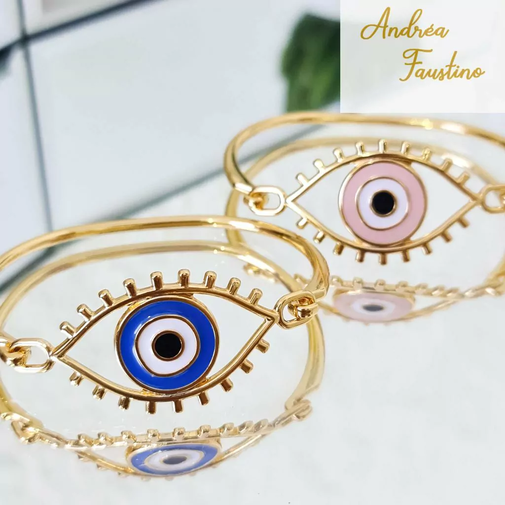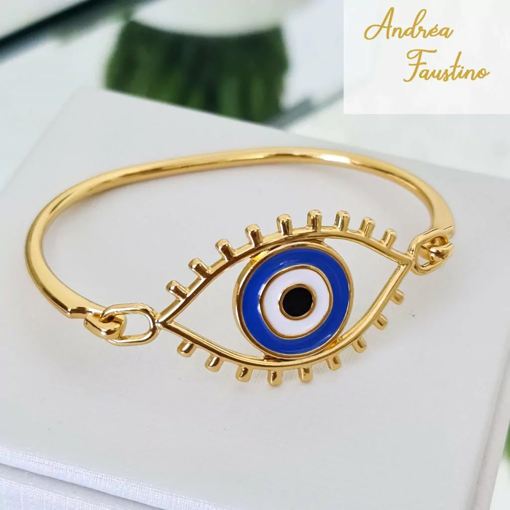 Bracelete de Olho Grego no aro dourado e com acabamento em fecho encaixe!