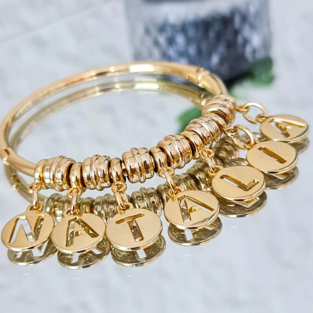 Com pingentes em medalhinhas de letra, formando o nome desejado!