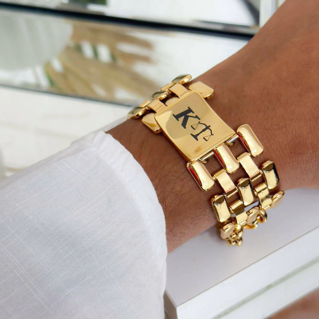 Esta pulseira dourada é confeccionada com uma corrente bridão grosso, oferecendo um visual robusto e moderno. Com acabamento em fecho lagosta, garante praticidade e segurança no uso. A pulseira mede 20cm, mas pode ser personalizada de acordo com a sua medida, basta enviar sua solicitação pelo WhatsApp: 21 976081720. O centro da pulseira é totalmente personalizável de acordo com o que você desejar (deixe sua preferência nas observações). Ideal para quem busca um acessório único e cheio de estilo.
